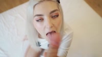 A beautiful blonde teen blows and rides her boyfriend's cock after a Halloween party.